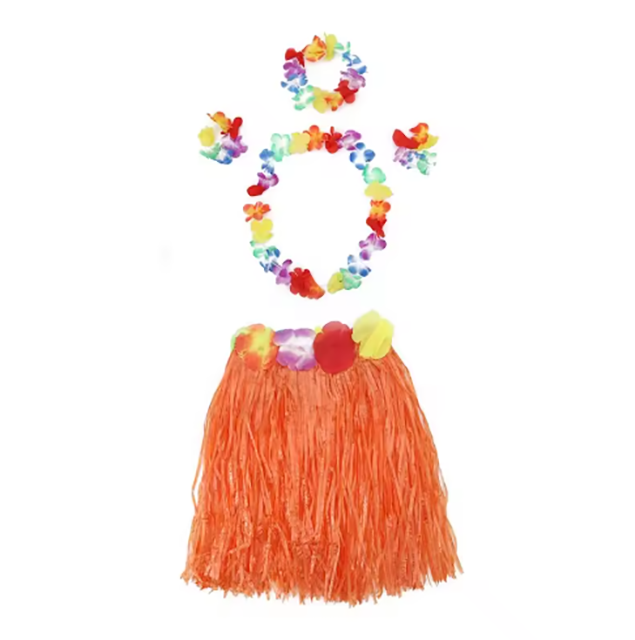 Juego de 5 Piezas de Artículos de Fiesta de Plástico al por Mayor para Mujeres Adultas, Disfraces de Halloween y Año Nuevo, Faldas Hawaianas de Hierba
