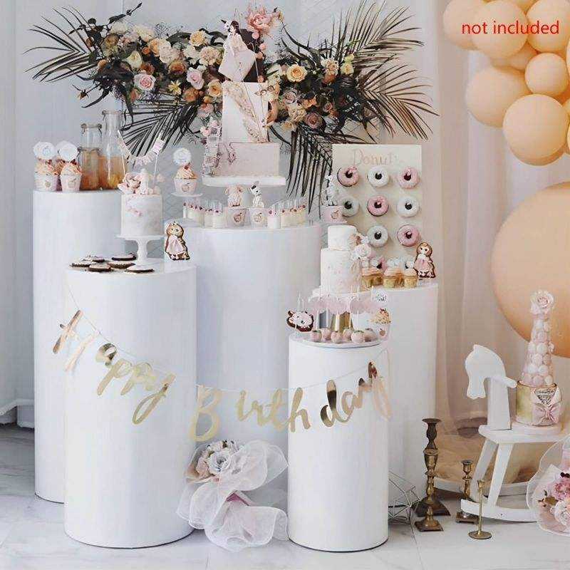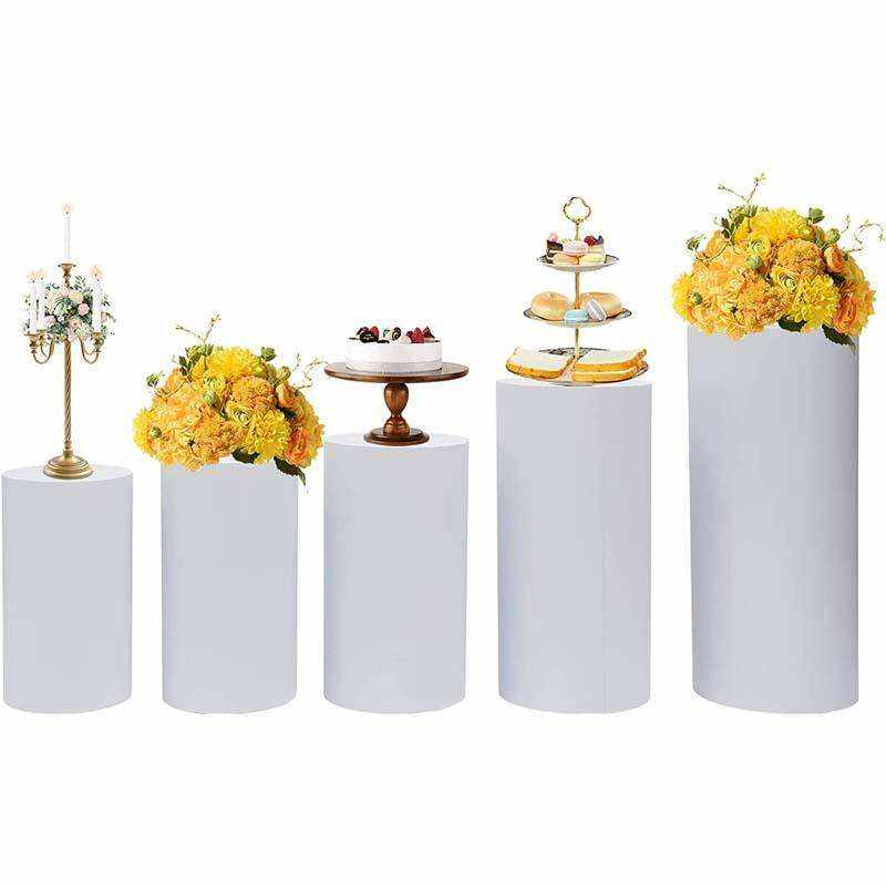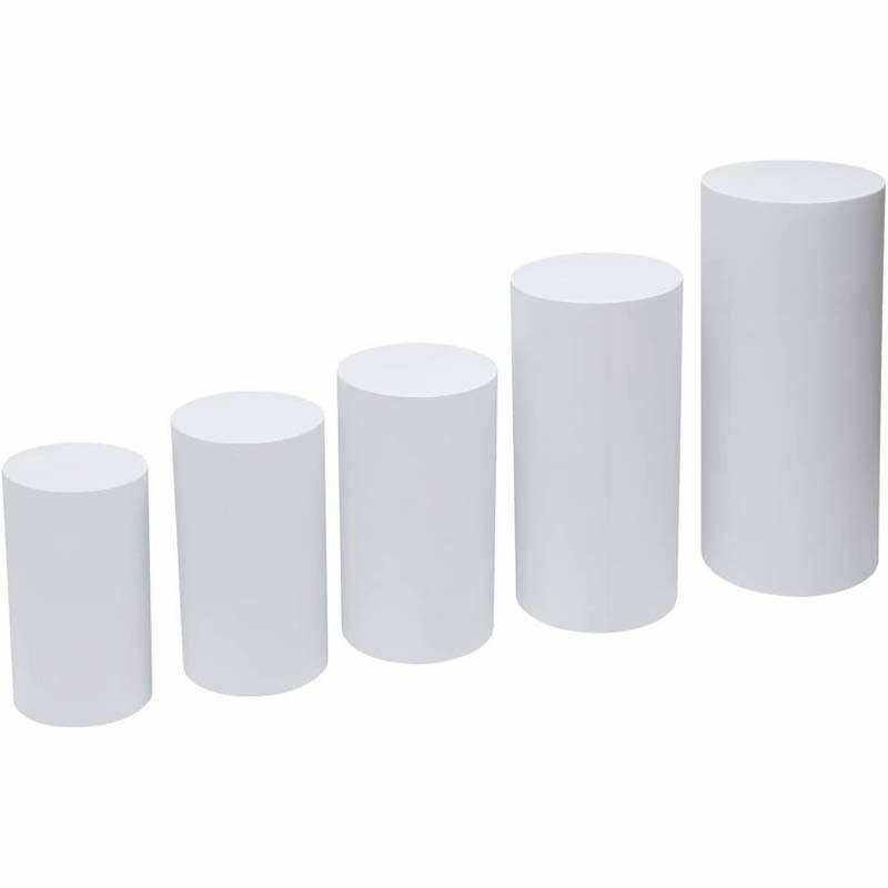 Juego de 5 Pedestales Cilíndricos Redondos de Hierro Blanco para Pastel de Boda, Estilo Moderno