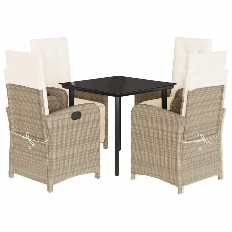 Juego de comedor de patio de ratán polivinílico beige de 5 piezas con cojines Colección de muebles de exterior elegante