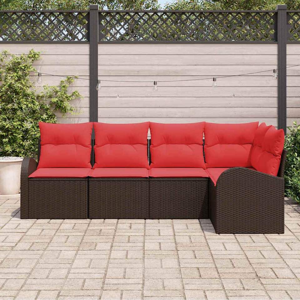 Juego de sofás de jardín de ratán sintético marrón de 5 piezas