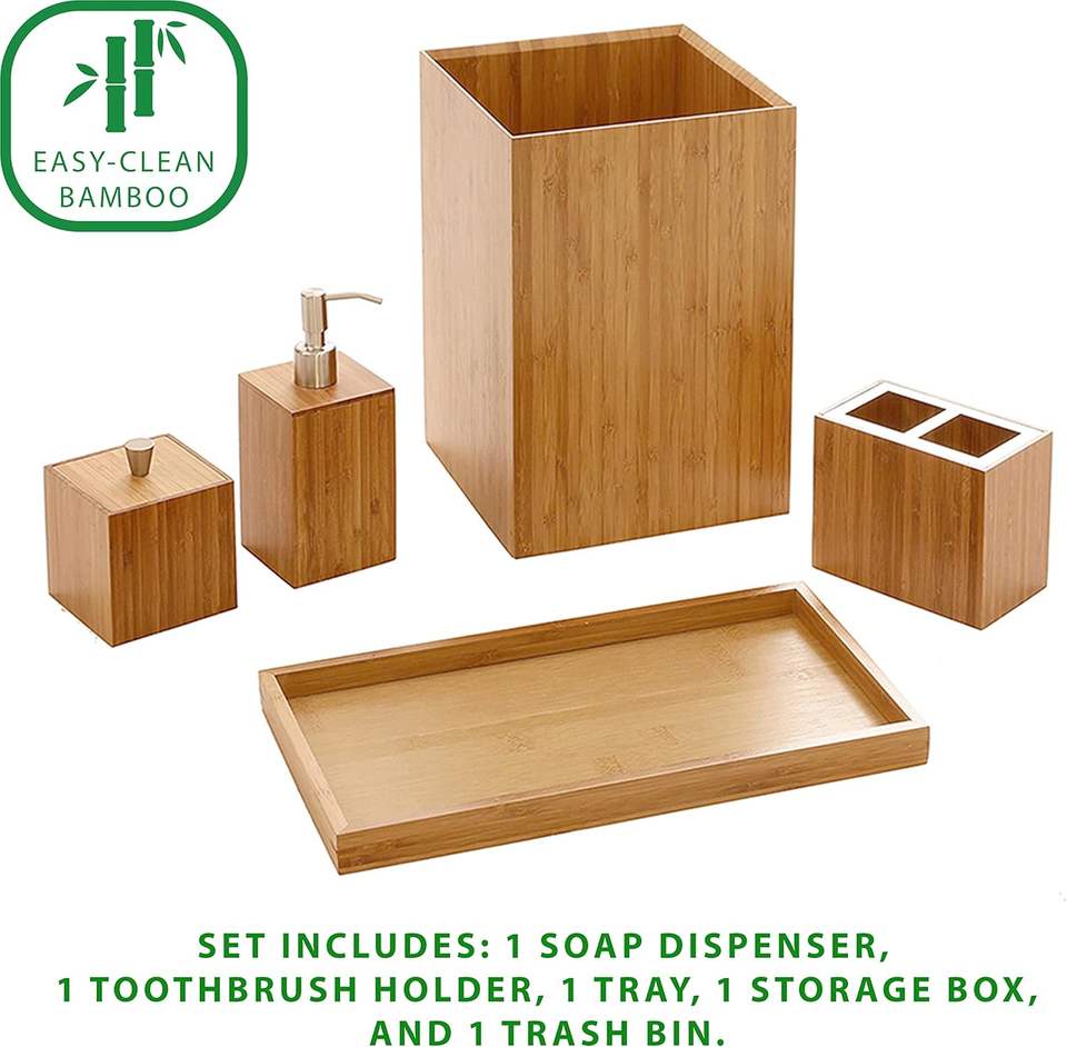 Nombre del producto:Set de Decoración de Baño de Bambú Accesorios Estéticos para el Hogar y la Cocina