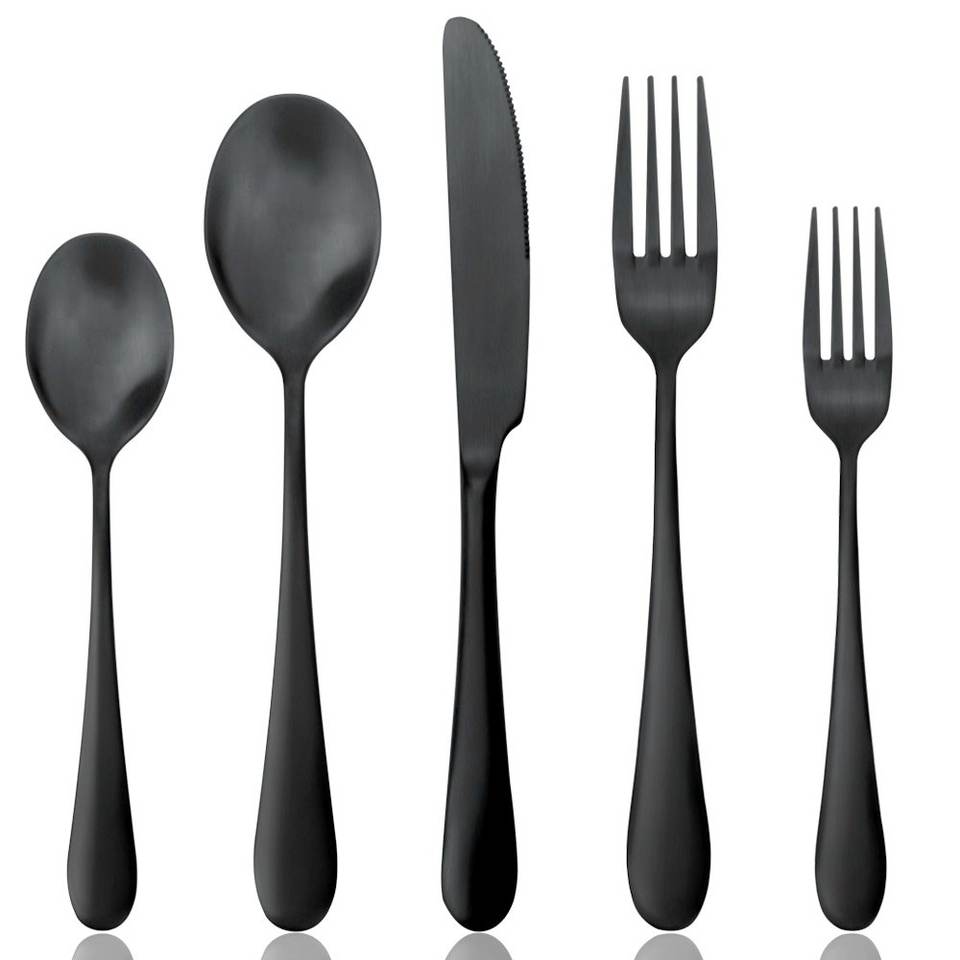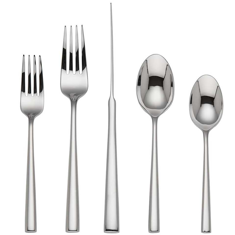 Juego de cubiertos de 5 piezas con diseño de mango cuadrado Juego de cubiertos de lujo de acero inoxidable plateado en cubiertos de Art Assembly