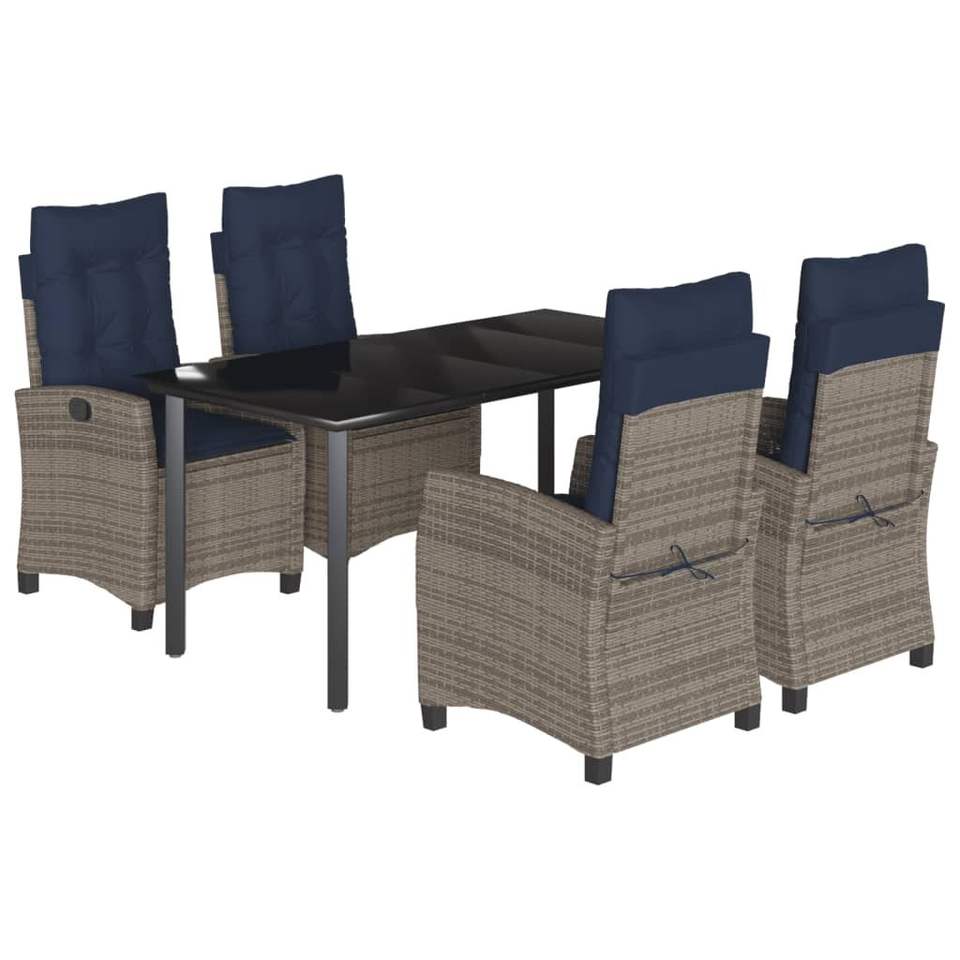 Juego de Comedor de Patio de 5 Piezas en Poliratán Gris con Cojines, Elegantes Conjuntos de Jardín