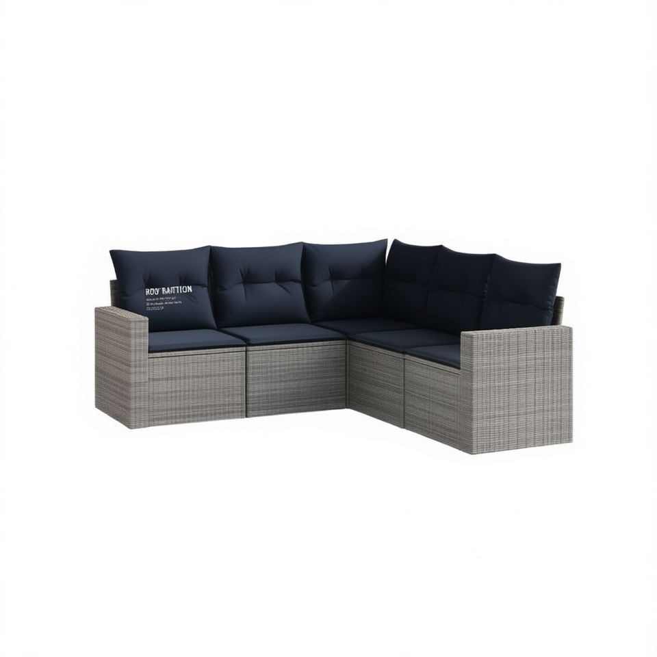 Conjunto de sofás de patio de ratán sintético gris con cojines, muebles de jardín para exteriores, asientos de estilo contemporáneo para 5 personas