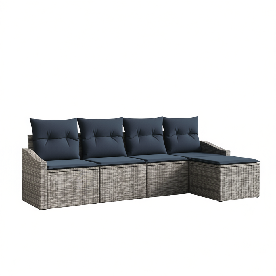 Conjunto de Sofá de Jardín de Ratán Sintético Gris con Cojines, Muebles de Exterior de 4 Plazas, Diseño Contemporáneo