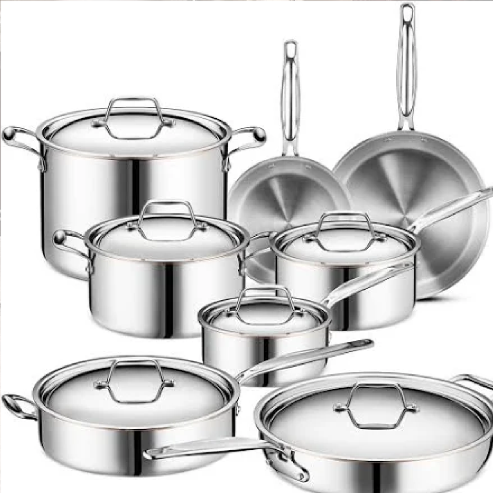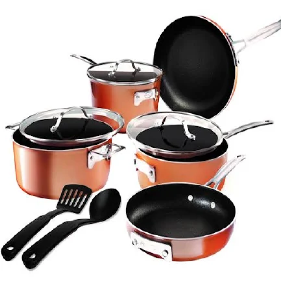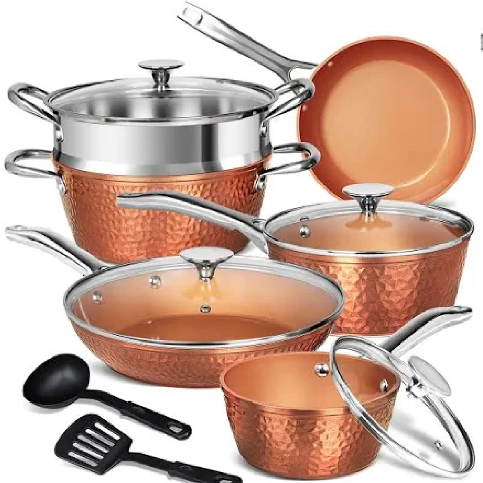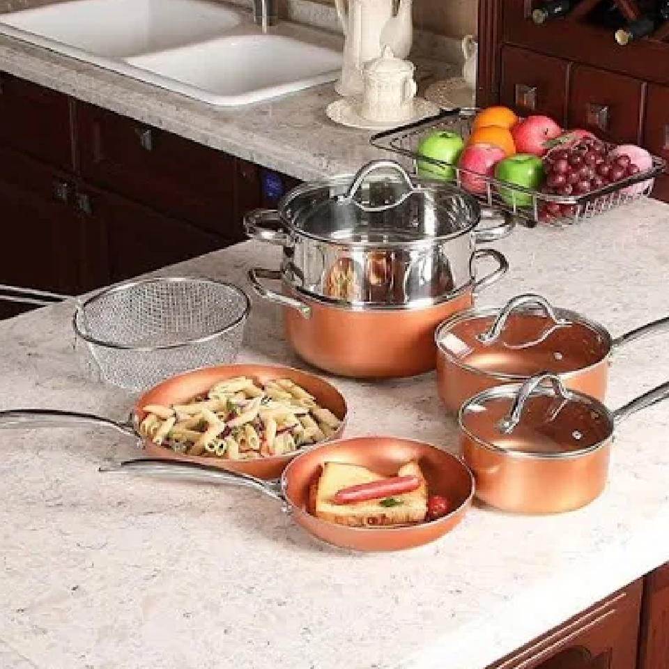 Juego de utensilios de cocina de 5 piezas, Horno Holandés de Metal, sopa, bistec de leche, olla para freír con tapa de cobre, olla y sartén