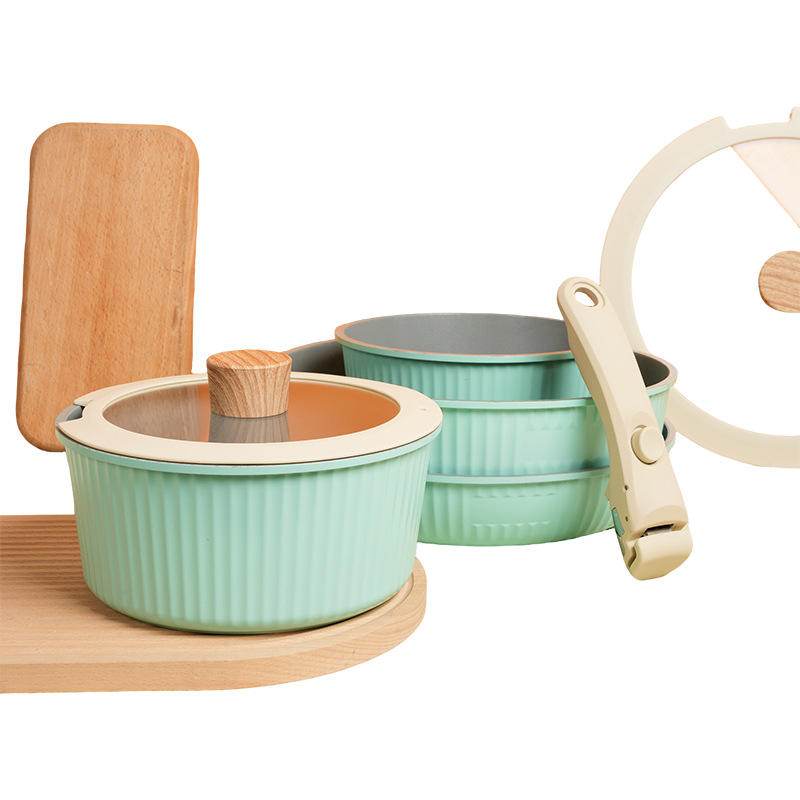 Juego de Utensilios de Cocina de Piedra Maifan de 5 Piezas, Sartén Antiadherente, Olla para Sopa, Apto para Horno, Solo Lavar a Mano