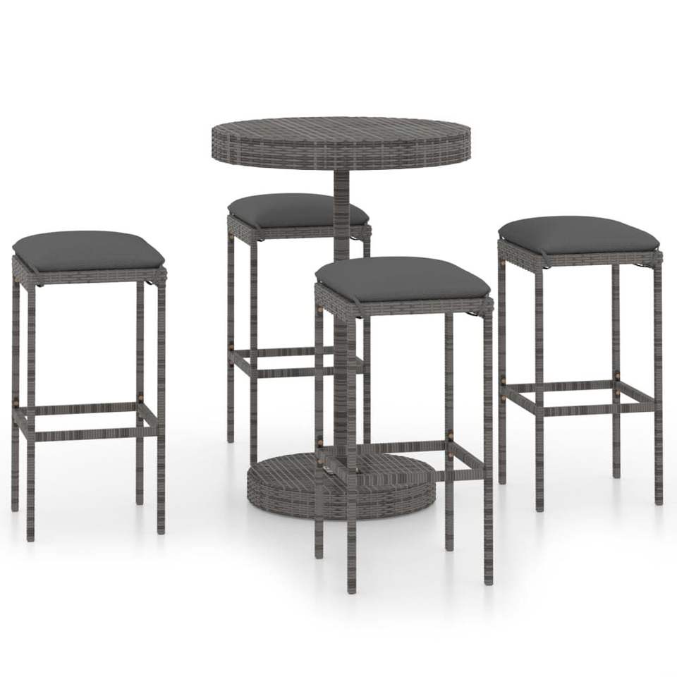 Juego de barra de patio gris de ratán polivinílico de 5 piezas con cojines Colección de muebles para exteriores