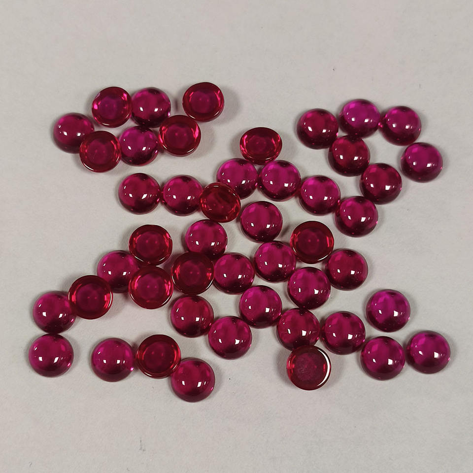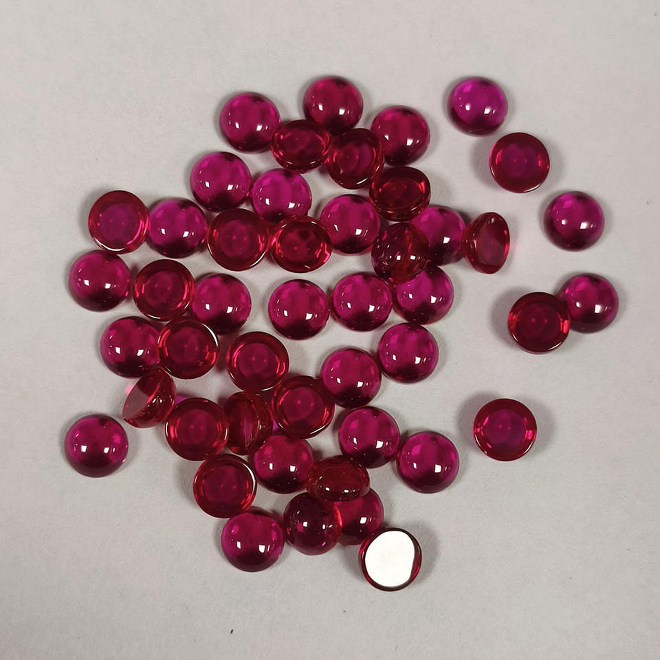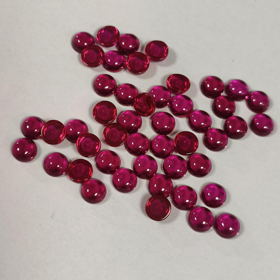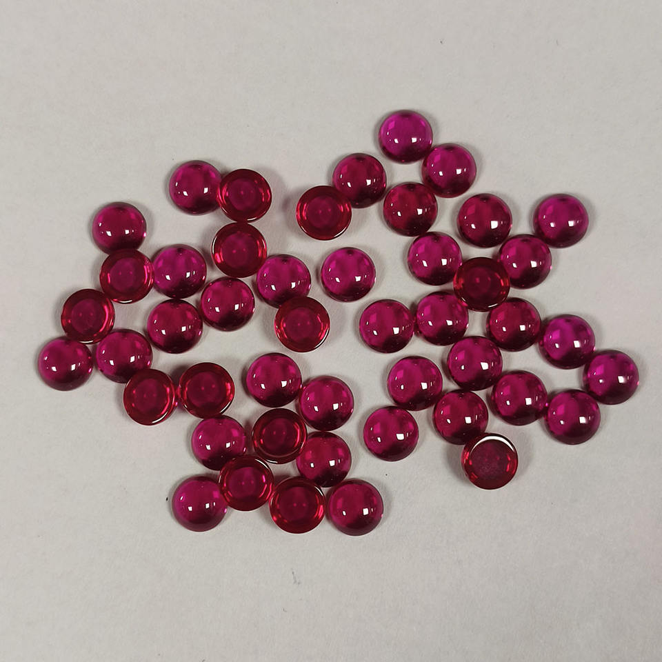 5 # Corindón Rubí, Forma Redonda, Cabujón de Base Plana, Gema Sintética Suelta para Joyería