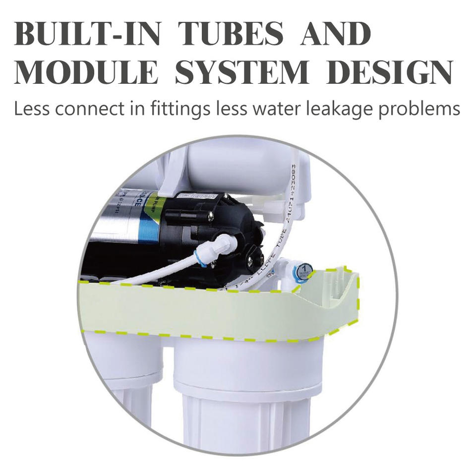 Sistema de Ósmosis Inversa de 5 Etapas Debajo del Fregadero Sin Bomba para Uso Doméstico, OEM/ODM Disponible, con Colector y Soporte de Plástico