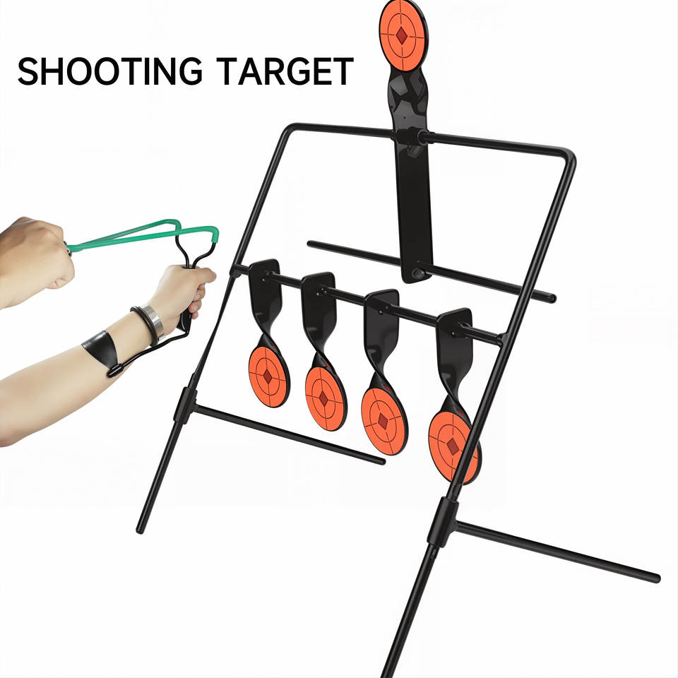 5-Station Auto Reset Shooting Target, 360° Flip Metal Spinner for Archery & Slingshot Practice, Portable Frame Stand