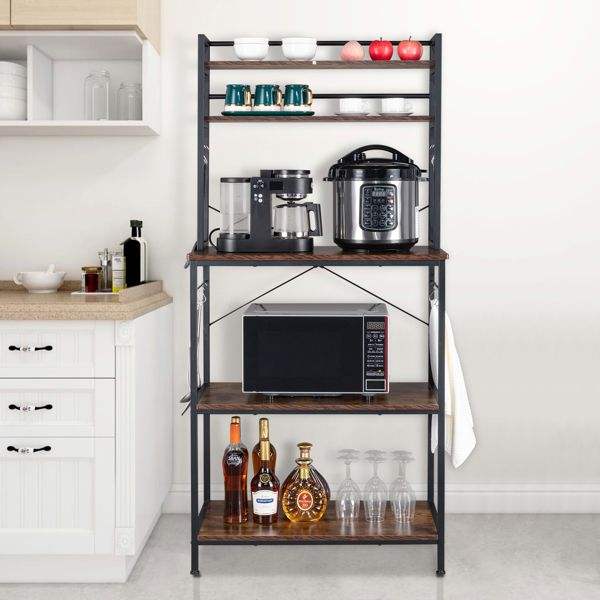 Carrito de Almacenamiento de Cocina de 5 Niveles con 10 Ganchos en Forma de S para Repostería y Soporte para Horno Microondas