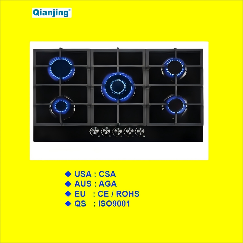 Cocina de Gas de 5 Quemadores, con Certificación CE, AGA e ISO900, de Alta Calidad, con Parrilla, Horno, Estufa, Soporte Resistente para Ollas y Protección