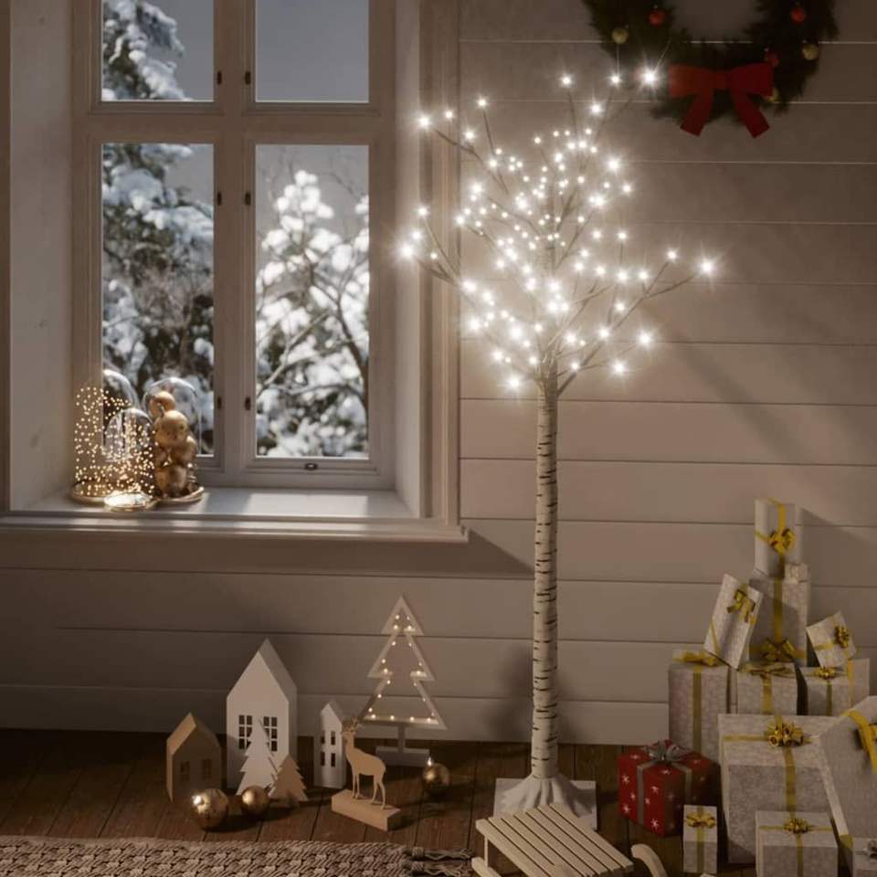 Árbol de Navidad de 5 pies con 156 LED Diseño de sauce blanco frío para uso en interiores y exteriores Decoración festiva de vacaciones