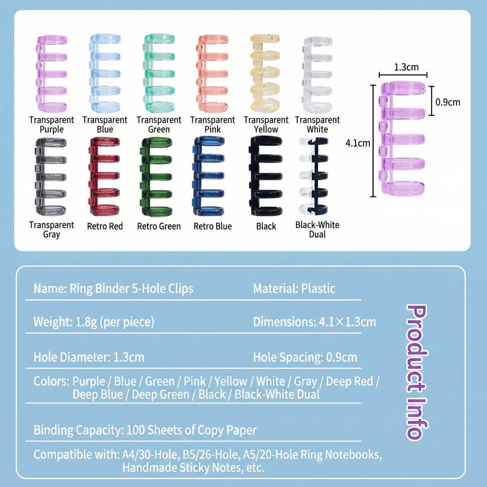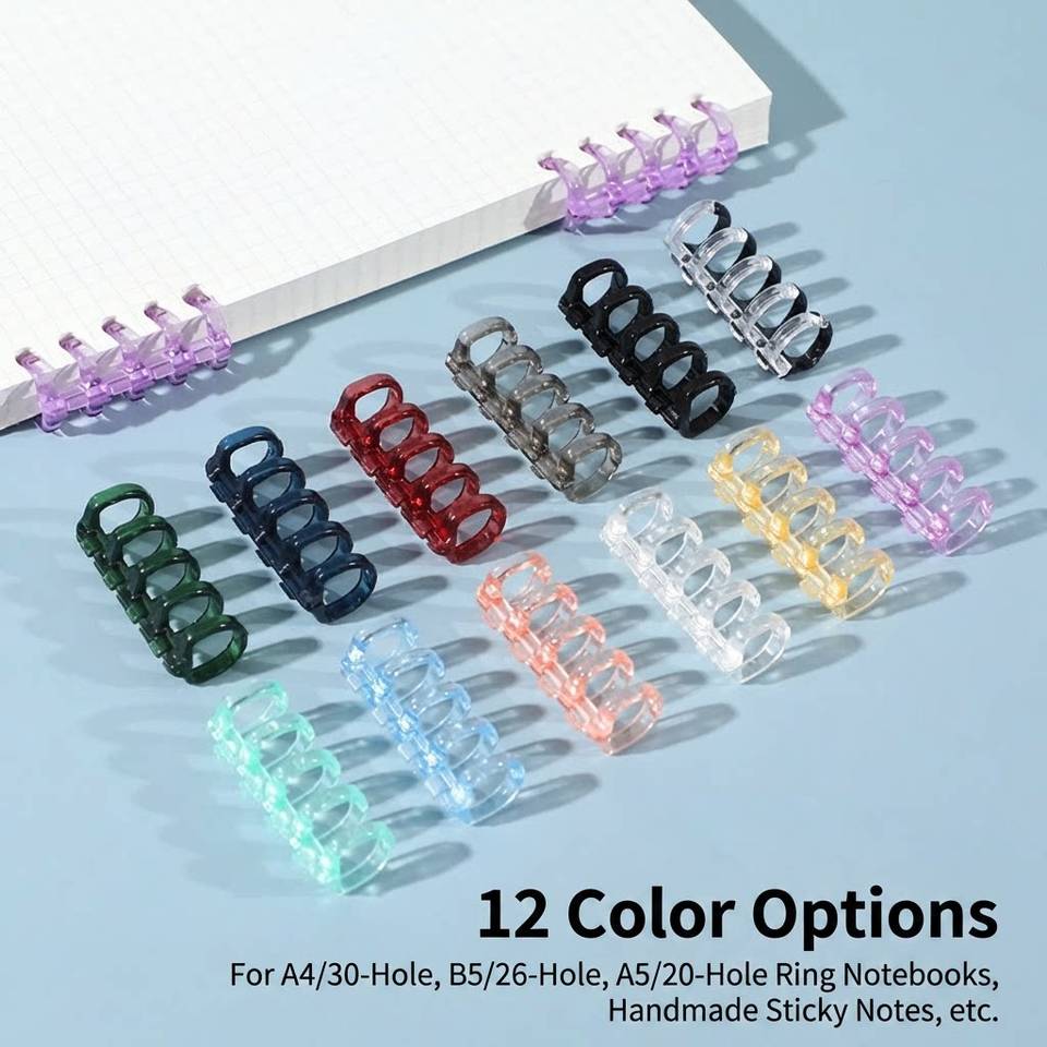 Anillas de 5 orificios para hojas sueltas, anillas de encuadernación desmontables DIY, anillas de plástico coloridas para encuadernación