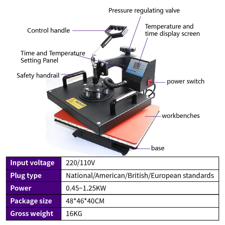 Máquina 5 en 1 de Sublimación por Transferencia Térmica para Estampado de Logotipos en Camisetas, Máquinas Cricut, Impresora, Prensa de Calor