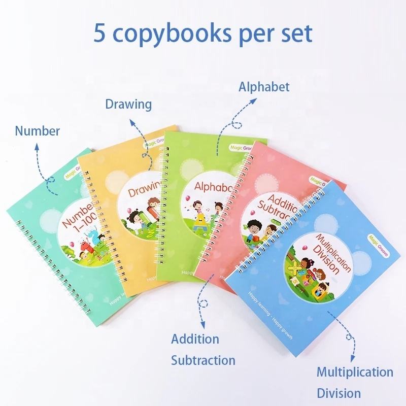 Cuaderno de práctica mágica 5 en 1, escritura a mano en inglés, regalos reutilizables, libros de trabajo, División de multiplicación, escritura a mano