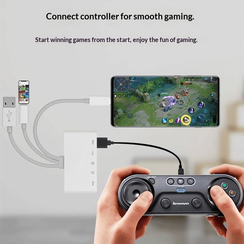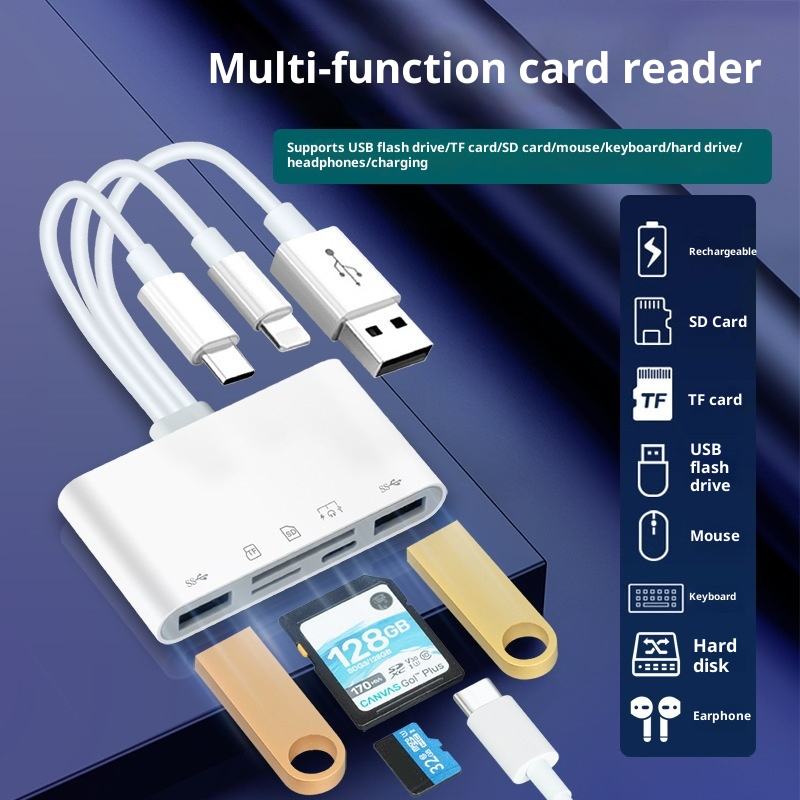 Adaptador USB OTG Multifuncional 5 en 1, Plug and Play, USB C y USB A, Lector de Tarjetas de Memoria SD Todo en Uno para iPhone