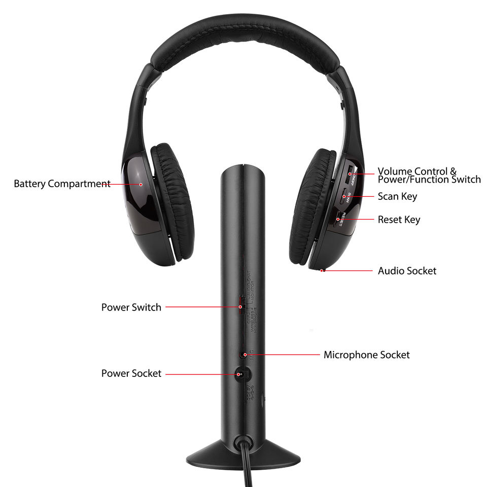 Auriculares inalámbricos multifuncionales 5 en 1, conjunto de emisor y receptor inalámbrico FM Hi-Fi, auriculares inalámbricos con radio FM, auriculares con cable
