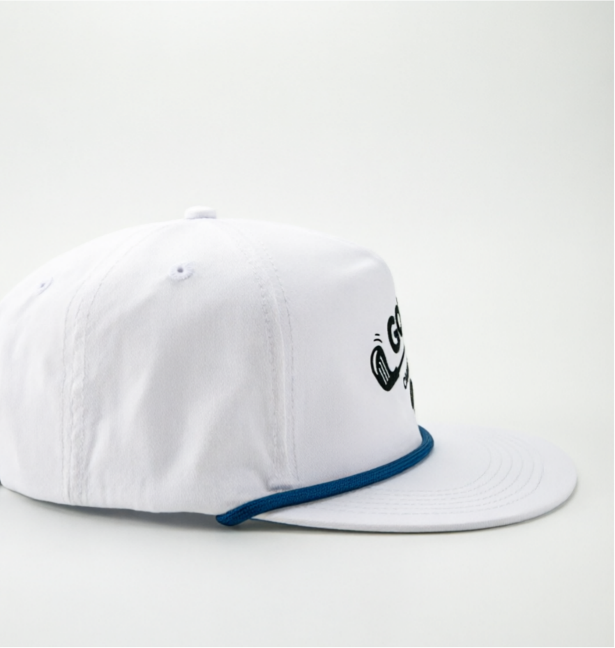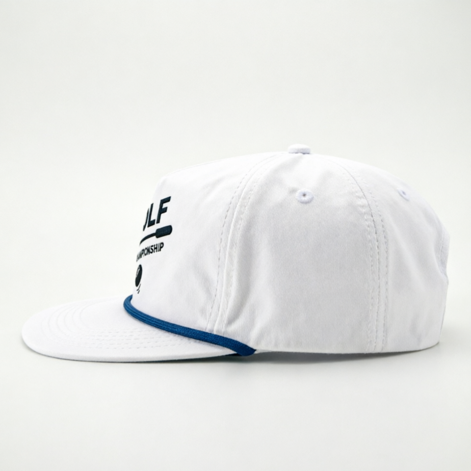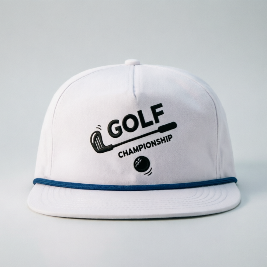 Gorra de Golf Blanca de 5 Paneles, Personalizable, con Visera Plana, Gorra de Béisbol con Cierre a Presión y Cuerda Azul, Regalo para Eventos de Golf