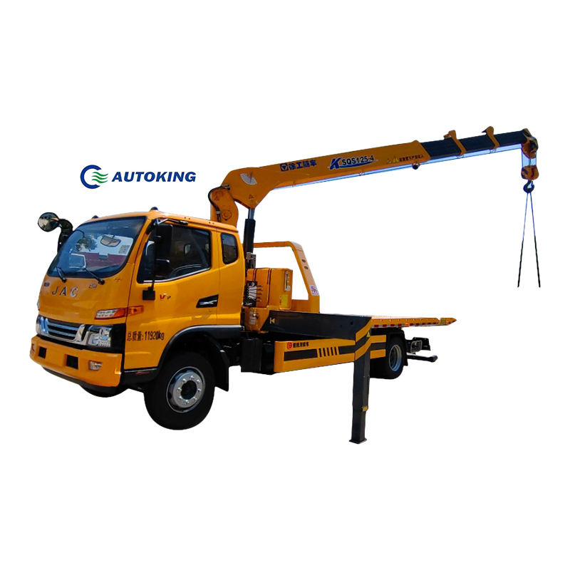 Camión de remolque pequeño de 5 toneladas, 4*2 JAC camión de remolque, camión de remolque, camión de remolque de plataforma plana con grúa a la venta