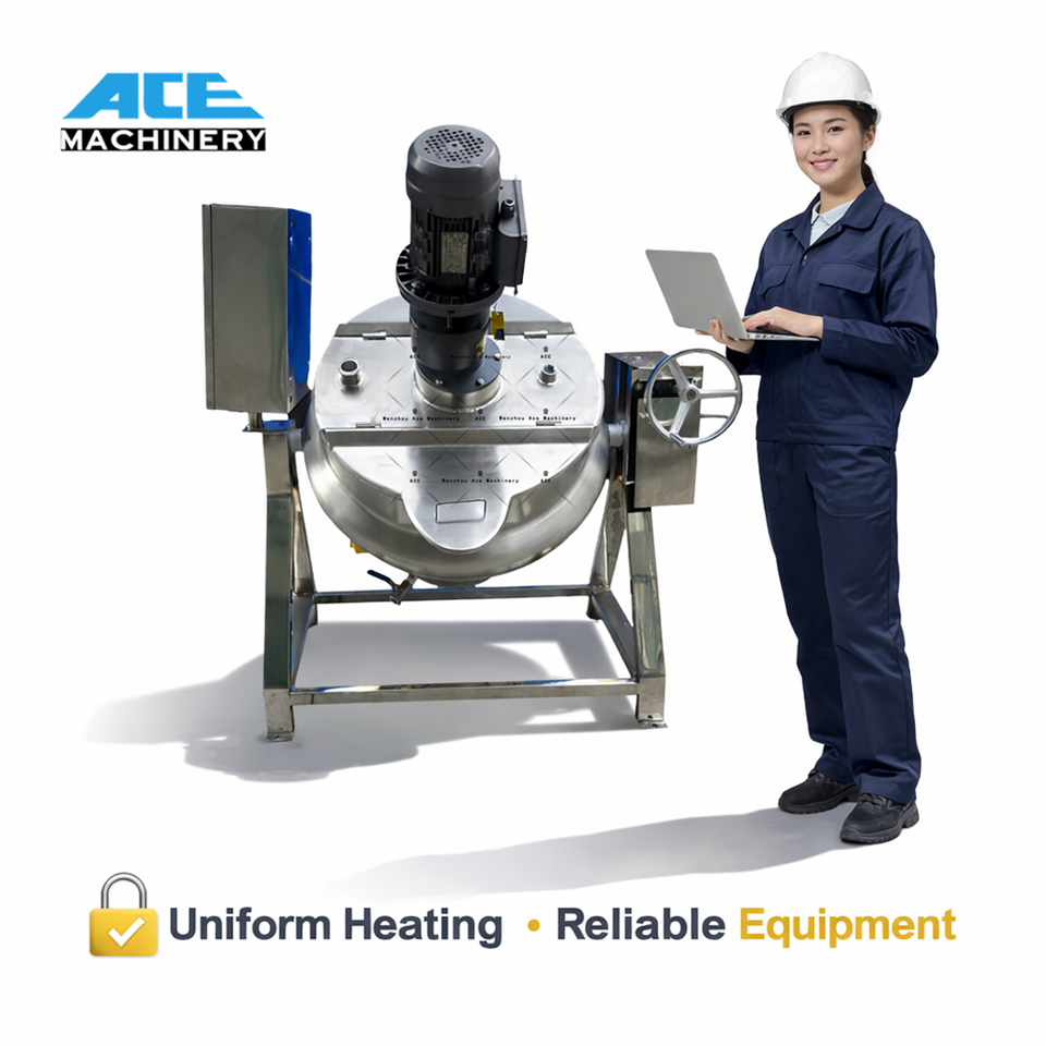 Olla de cocción industrial de 50-600L con agitador, caldera encamisada a gas/eléctrica con mezclador para guisos y sopas
