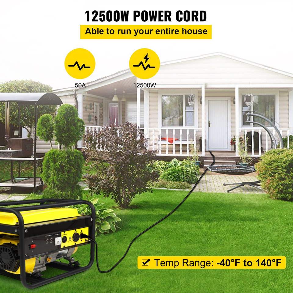 Cable de extensión para generador de 50 amperios, 15 pies, 4 cables, calibre 6, STW, mango portátil de 125V, 250V, V, cables de alimentación para generadores
