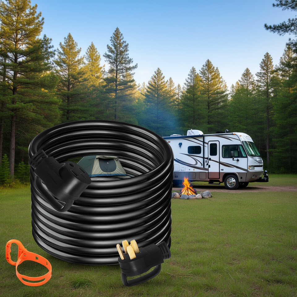 Cable de Extensión para RV de 50 Amperios y 36 Pies, Cable de Alimentación de Cobre Resistente para Remolques, Autocaravanas y Campers con Enchufe Nema y Conector C20