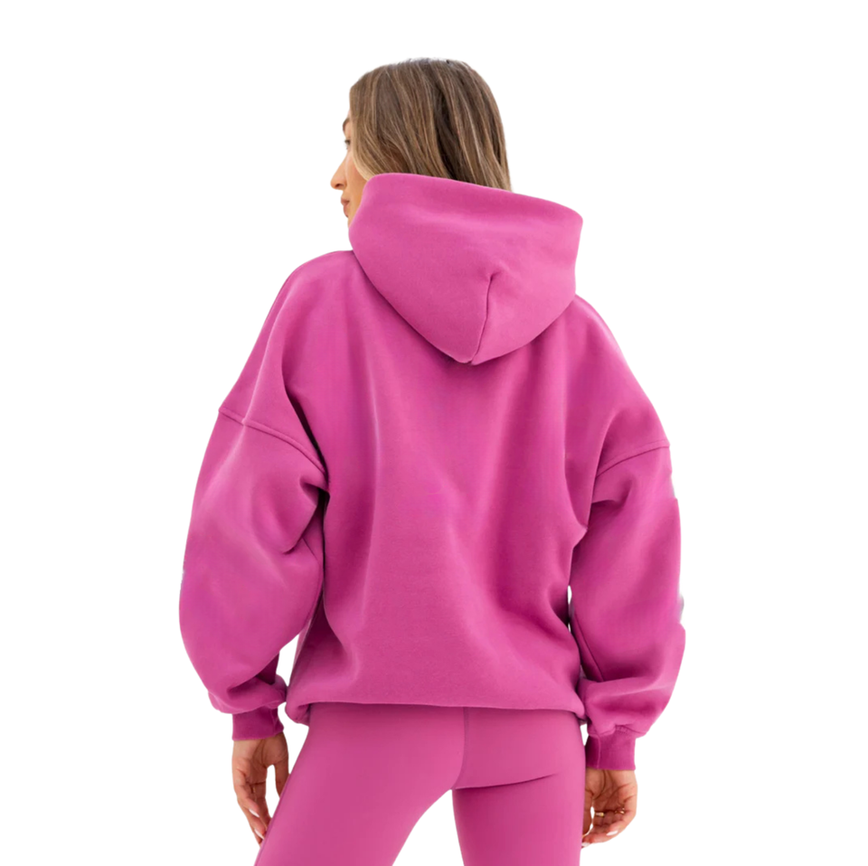 Sudadera Larga Holgada para Mujer, 50% Algodón, 50% Poliéster, Color Rosa Suave, Estilo Urbano, Hombros Caídos, Corte Holgado, Ropa de Invierno