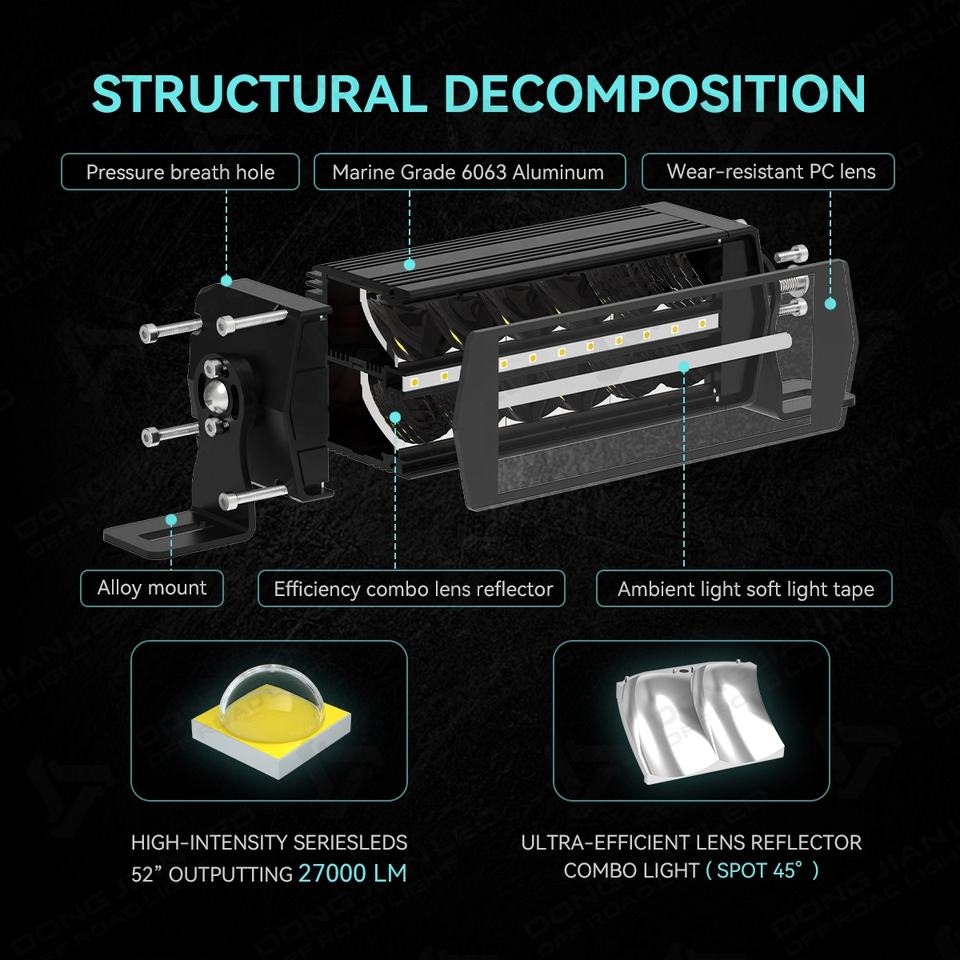 Barra de Luz LED de 50 Pulgadas, Doble Fila, 288W, 25000LM, Kit de Accesorios 4x4 para Auto, Ford F-150, Jeep Wrangler, Ram 1500, Toyota Tundra, Camioneta