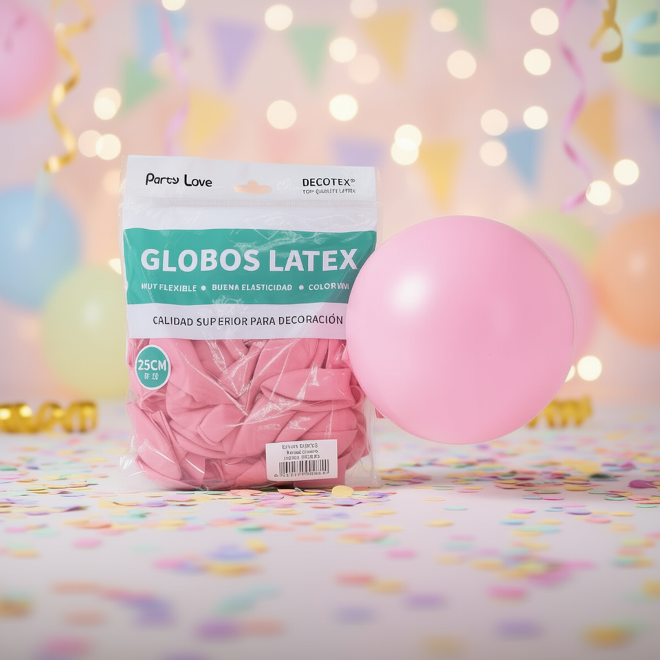 Globos de Látex Party Love de 25 cm, Color Rosa Claro, Redondos, para Decoración de Fiestas