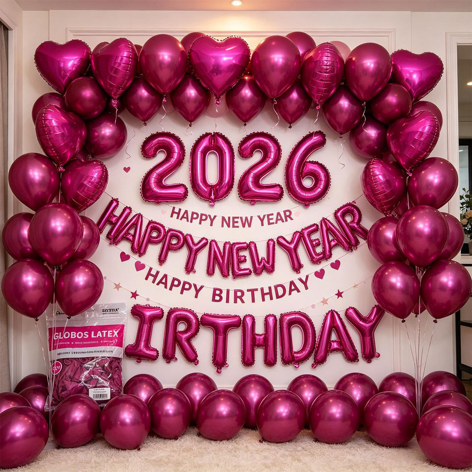 Globos de Látex Metálicos Color Fucsia de 30cm, 50 Unidades, para Fiestas y Decoraciones de Cumpleaños