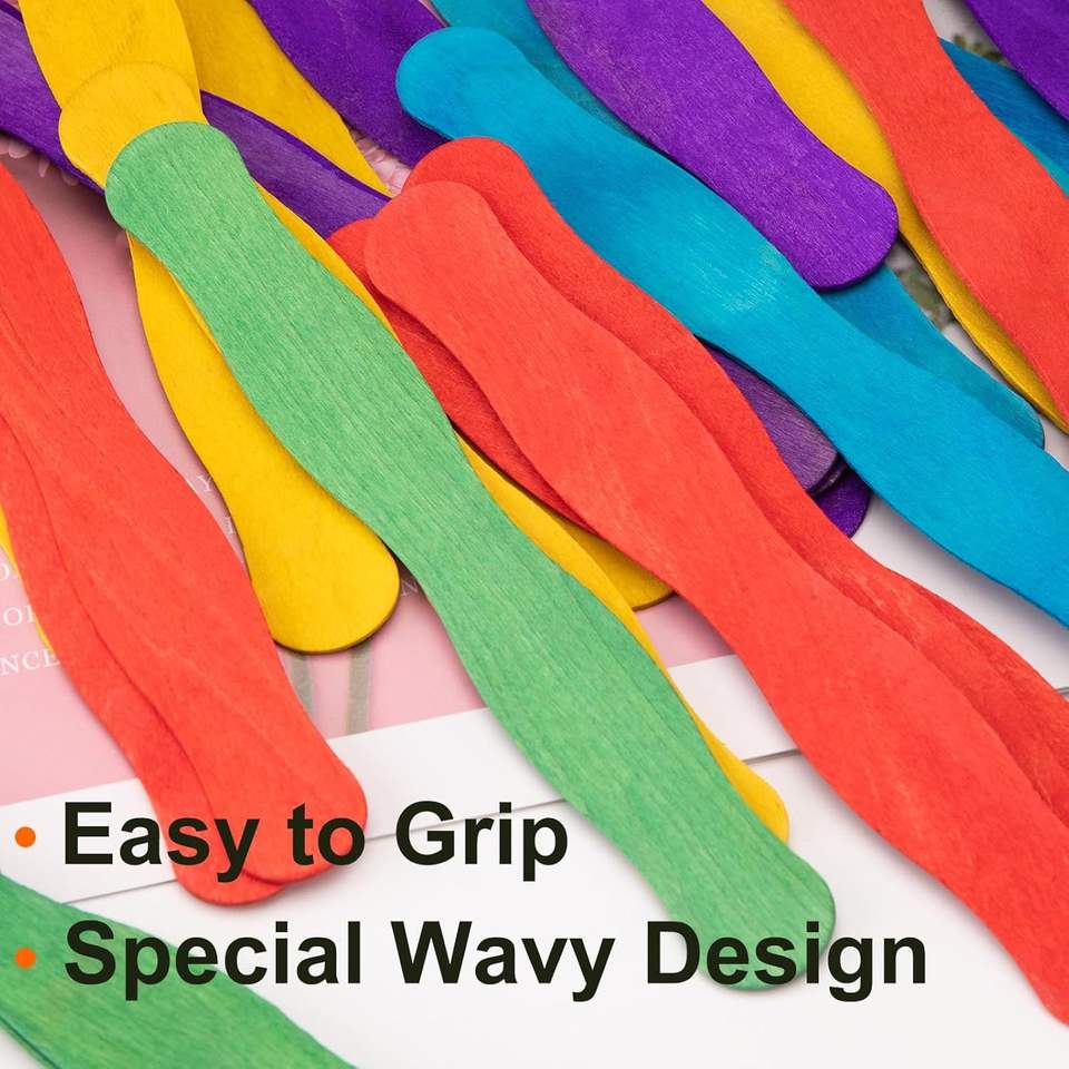 50 Palitos de Madera Ondulados de 8 Pulgadas de Colores, Palitos Arcoíris para Manualidades, Asas para Abanicos, Palitos Grandes para Helados, Suministros para Manualidades