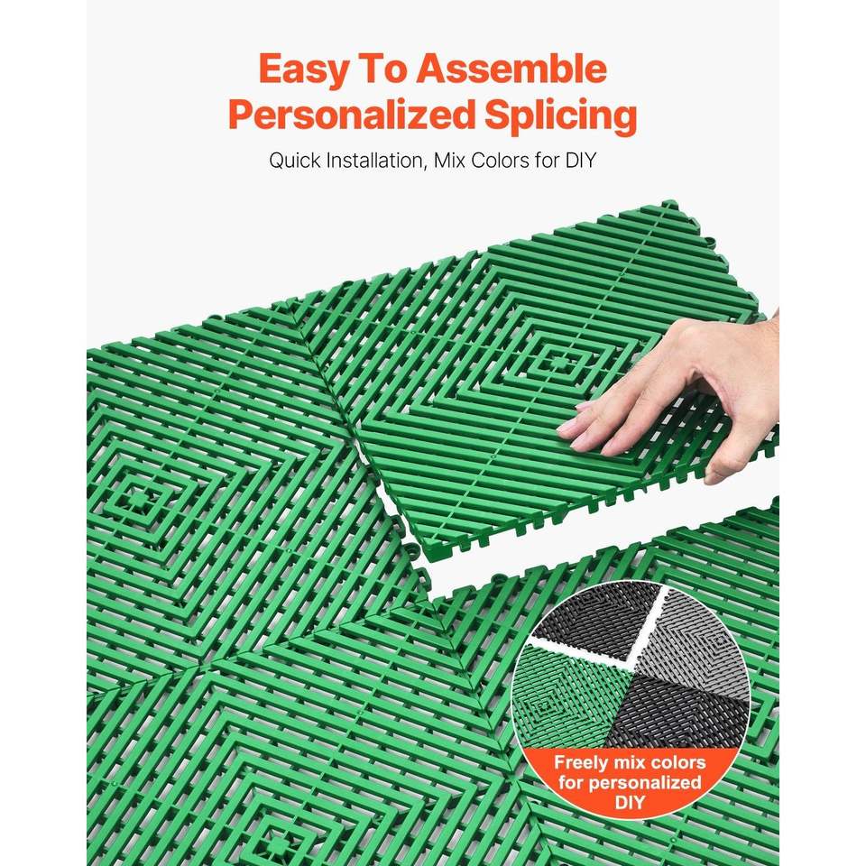 50 Piezas de Alfombrillas de Drenaje Modulares Encajables de 12 x 12 Pulgadas, Antideslizantes, Verdes, de PP, Alfombrillas de Drenaje Encajables, Revestimiento de Goma para Pisos