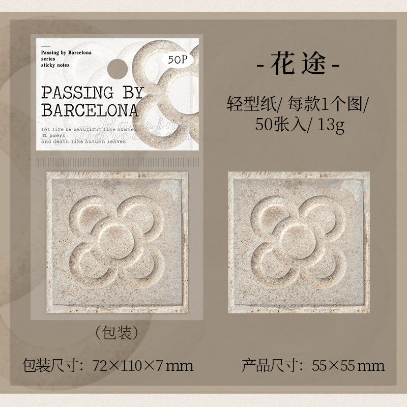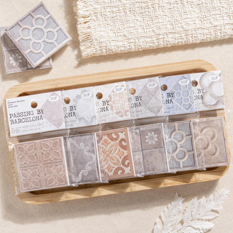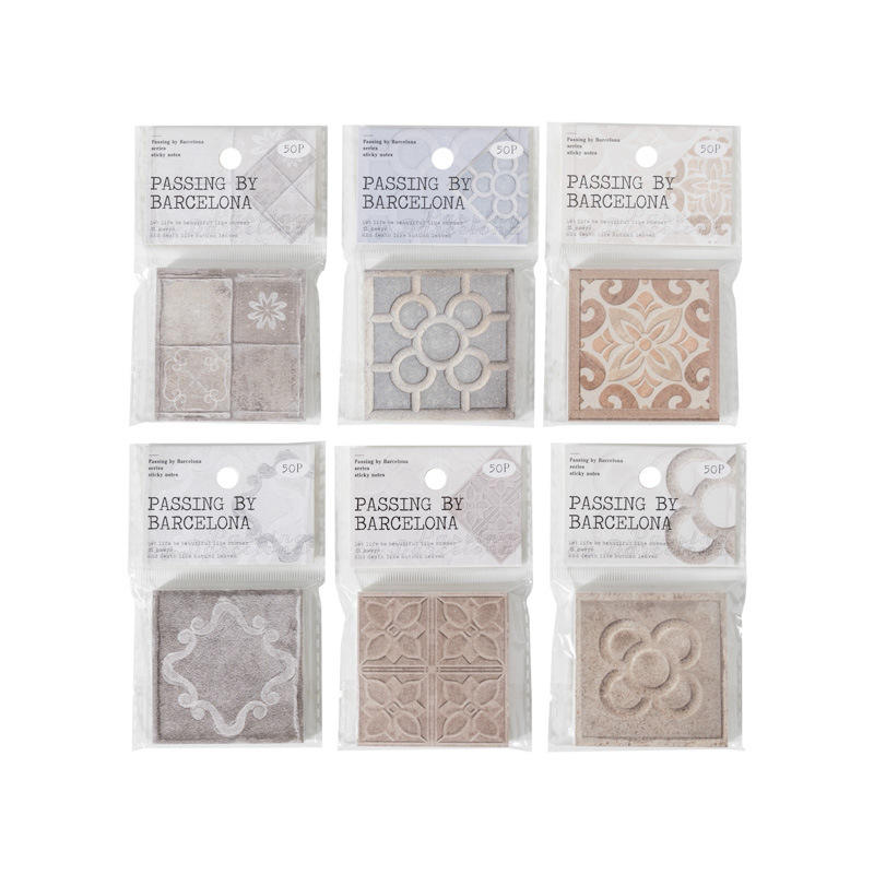 Bloc de Notas Adhesivas, 50 Unidades por Paquete, Serie Barcelona, Diseño de Azulejos, Material Básico, Planificador, Notas Adhesivas Decorativas