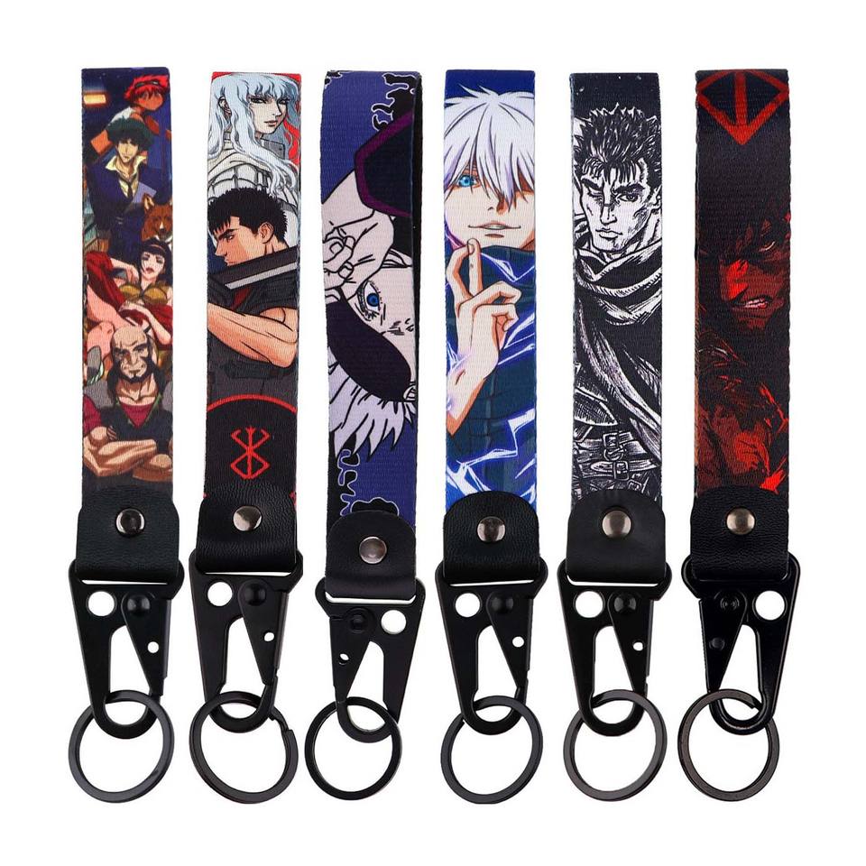 Llavero de Metal personalizado de diseño 500, serie Anime, llavero de boca de águila de nailon, logotipo trenzado bordado, cordón de muñeca corto