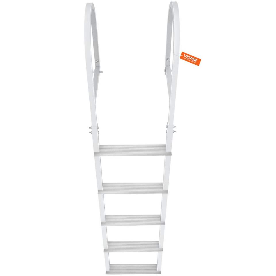 Escalera de aluminio de 5 peldaños desmontable con capacidad de carga de 500 lb, con goma antideslizante de 3.1 pulgadas de ancho, para embarcaciones pontón y uso en piscinas.