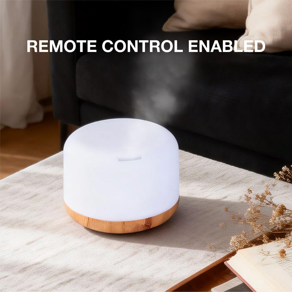 Difusor de Aceites Esenciales Eléctrico de 500 ml con Control Remoto, Difusor de Aroma Ultrasónico sin Agua, Luz LED de 7 Colores, Uso en Mesa, 1 Año de Garantía