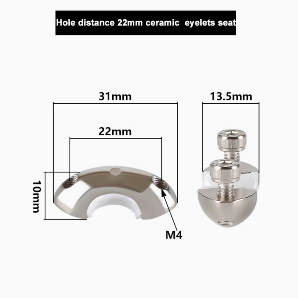 Guía de hilo para máquina de 500 hilos, ojal de cerámica de circonia, asiento metálico mecanizado por CNC, 31*13.5*10, distancia entre orificios 22mm