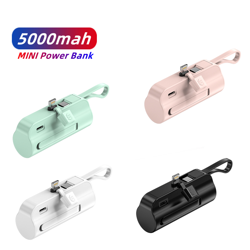Mini paquete de energía portátil de 5000mAh, Banco de energía de batería para cargador de Iphone, cápsulas, bancos de energía de emergencia con Cable y llavero