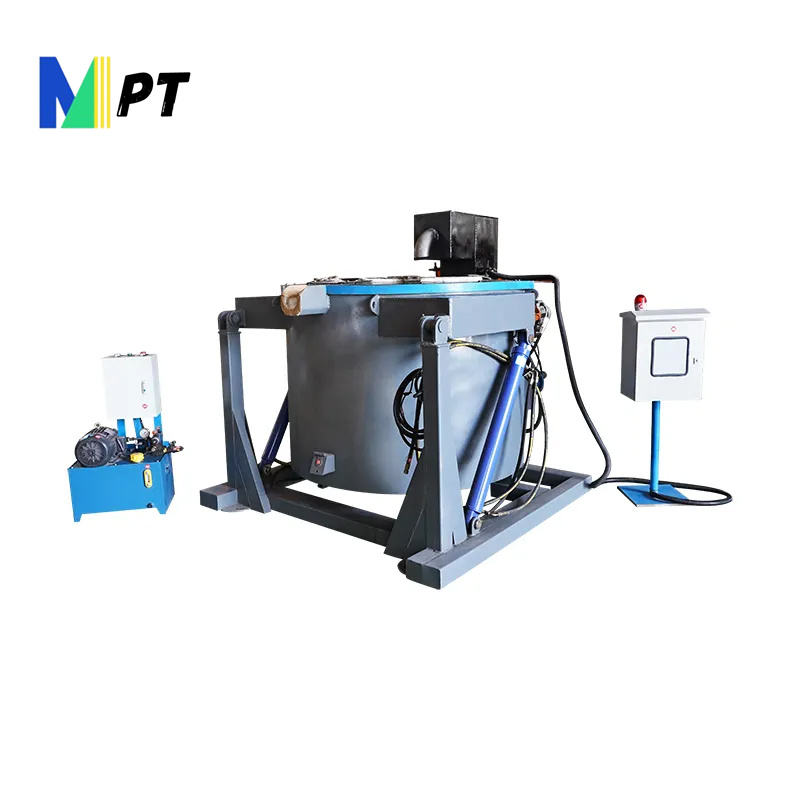 Máquina de horno inclinable de acero de 500Kg y 5T, horno de fusión de aluminio y Metal Industrial con batería de 300Kg, recuperación de chips Khz