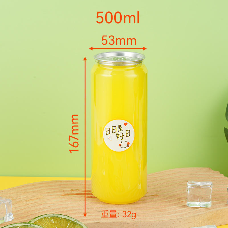 500ML Embalaje sellado Pop Can Cup Botella Plástico Batido Jugo Botellas de agua transparentes a prueba de fugas Botellas de bebidas para mascotas