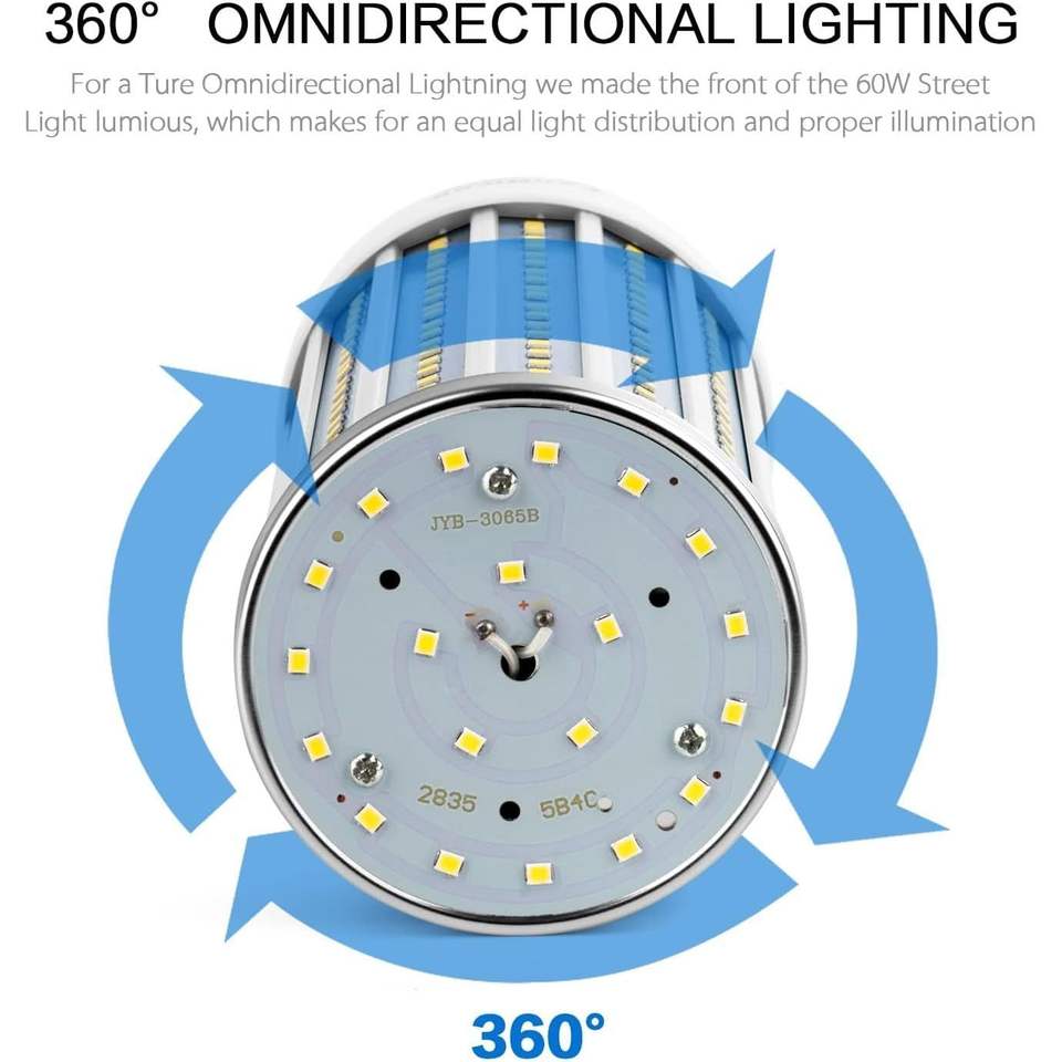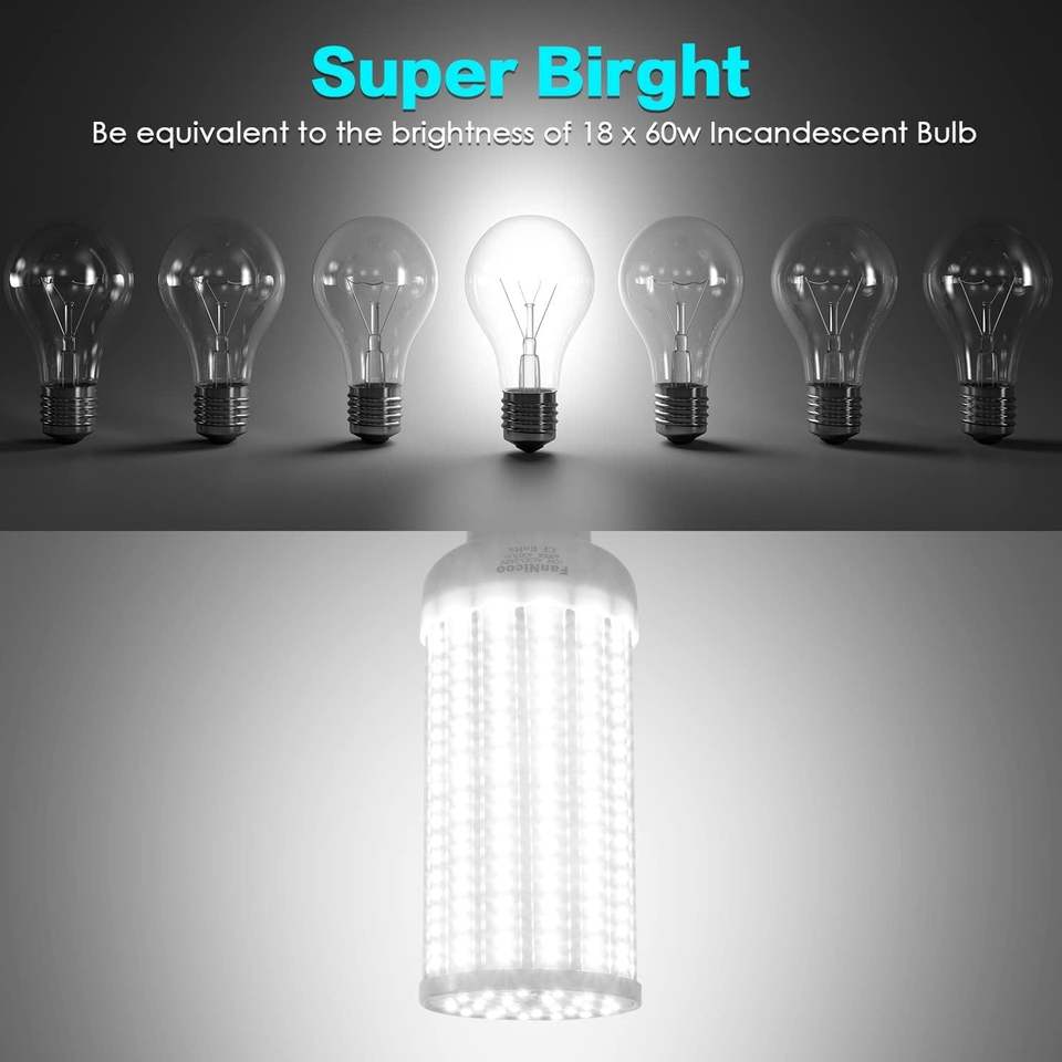 Bombilla LED tipo maíz equivalente a 500W, 5500 lúmenes, 6500K, base E39 Mogul, para grandes áreas, luz blanca fría diurna.