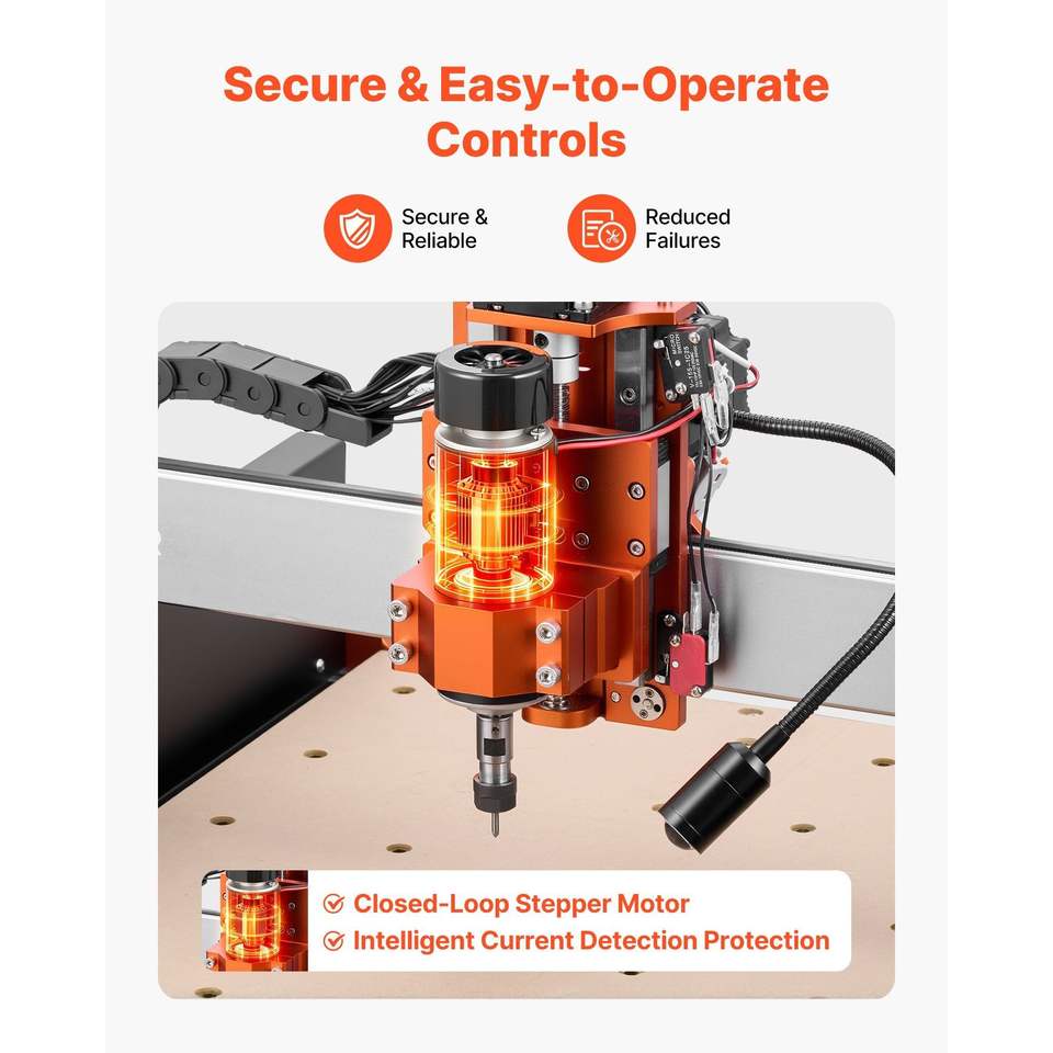 Máquina CNC de 3 Ejes con Husillo de 500W, Rieles Lineales Dobles y Tornillo de Bolas, 15.75 x 15.75 x, para Grabado y Fresado de Madera