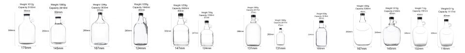 Botella de Vidrio Vacía de 500 ml, 1 L, 1,5 L, 2 L, 2,5 L, 3 L, 4 L, 5 L para Vodka, Ginebra, Alcohol, Whisky, Vino, con Tapa de Rosca