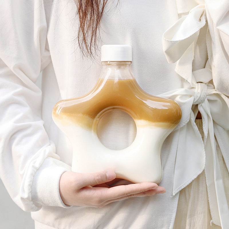 Botellas de Bebidas de Plástico PET Transparente de 500 ml con Forma de Estrella y Tapa de Rosca para Té con Leche, Jugo, Refresco, Empaque con Logotipo Personalizado