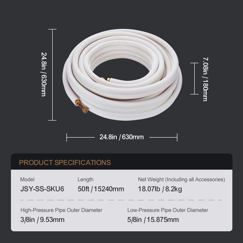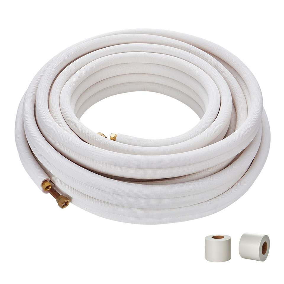 Juego de Tuberías de Cobre para Aire Acondicionado Mini Split de 50 Pies, 3/8" 5/8" D.E., con Aislamiento de Triple Capa, Duradero
