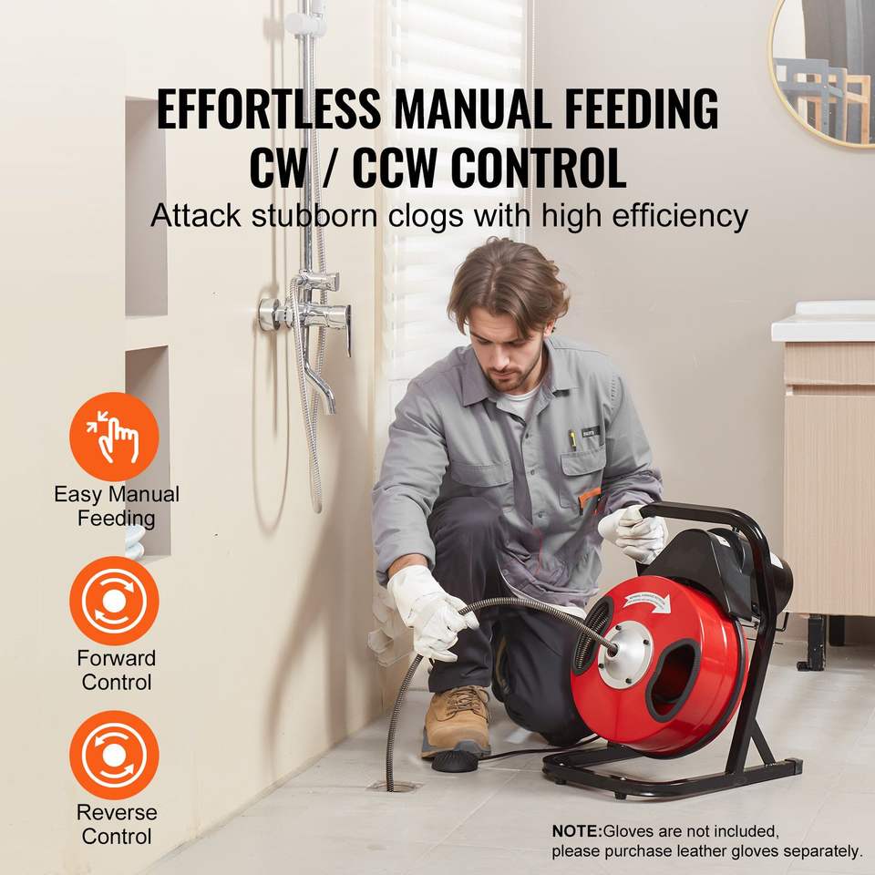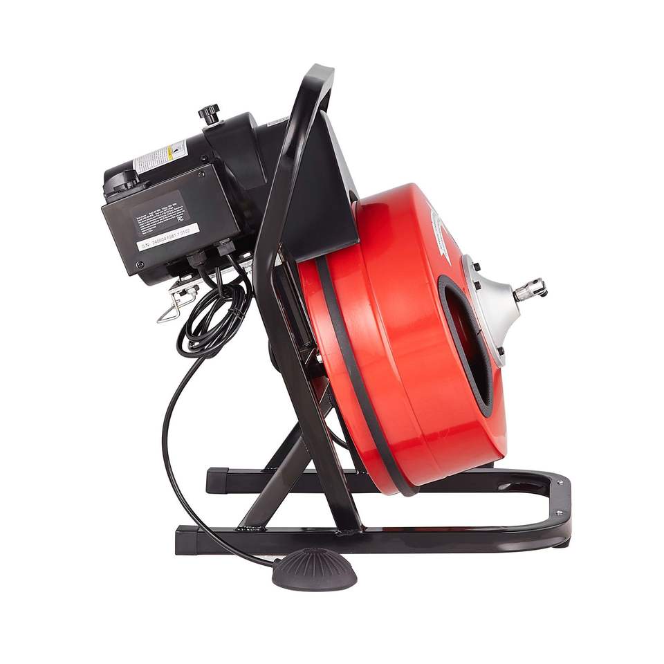 Desatascador de Drenajes Manual de 50 Pies x 1/2 Pulgada con 4 Cortadores, Activación por Aire, Interruptor de Pie de 2 y 4 Pulgadas, Máquina Limpiadora de Drenajes Eficaz