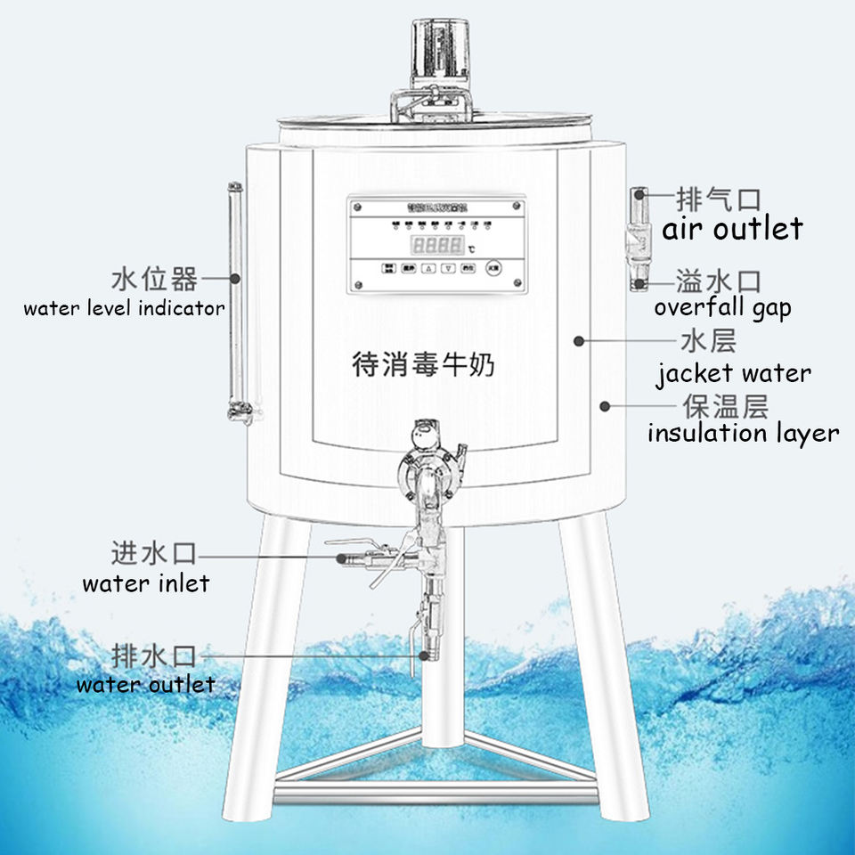 Máquina pasteurizadora de baja temperatura de 50L para esterilización de leche y pasteurización de crema