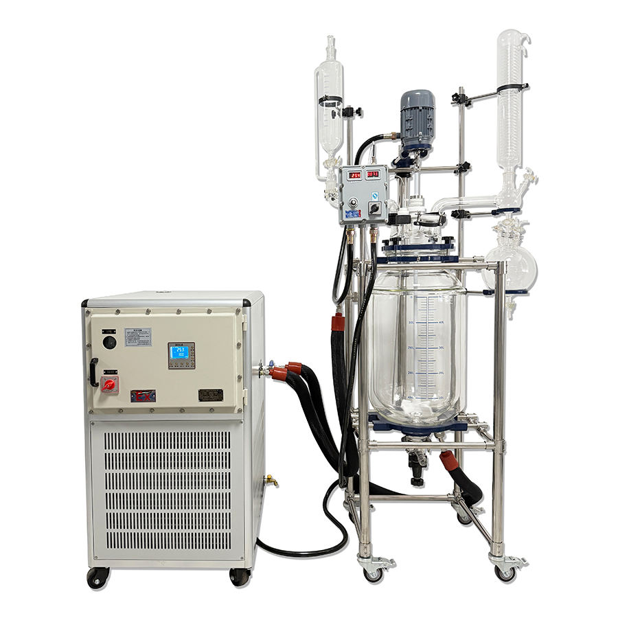 Reactor agitador de vidrio con camisa de sellado de PTFE multifunción a prueba de explosiones de 50 litros